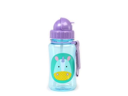 Detská nerezová fľaša na vodu so slamkou SKIP HOP Zoo - Jednorožec 12m+, 350 ml