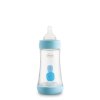 Dojčenská plastová fľaša so silikónovým cumlíkom vhodná od 2m+ so stredným prietokom.