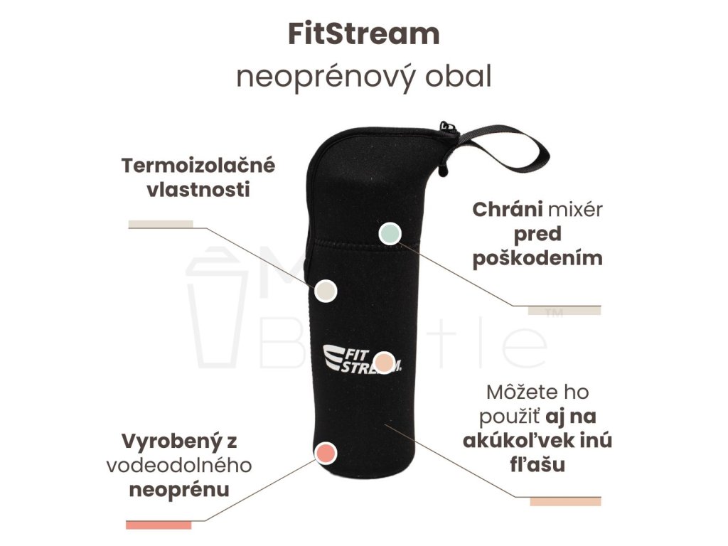 Neoprénový obal FitStream je navrhnutý najmä na mixér Fitstream, ale môžete ho použiť aj na akúkoľvek inú fľašu. Má objem približne 1l a na uchytenie praktické pútko a zips.