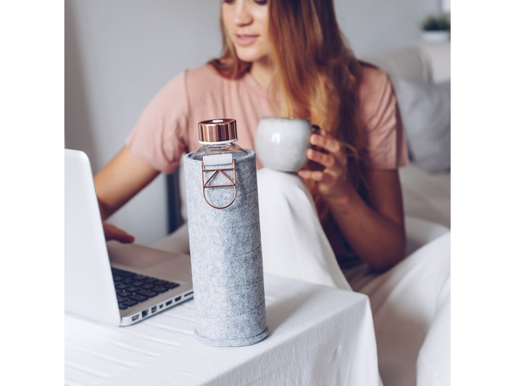 Fľaša EQUA Mismatch s plsťovým obalom je vyrobená z teplotne odolného borosilikátového skla.