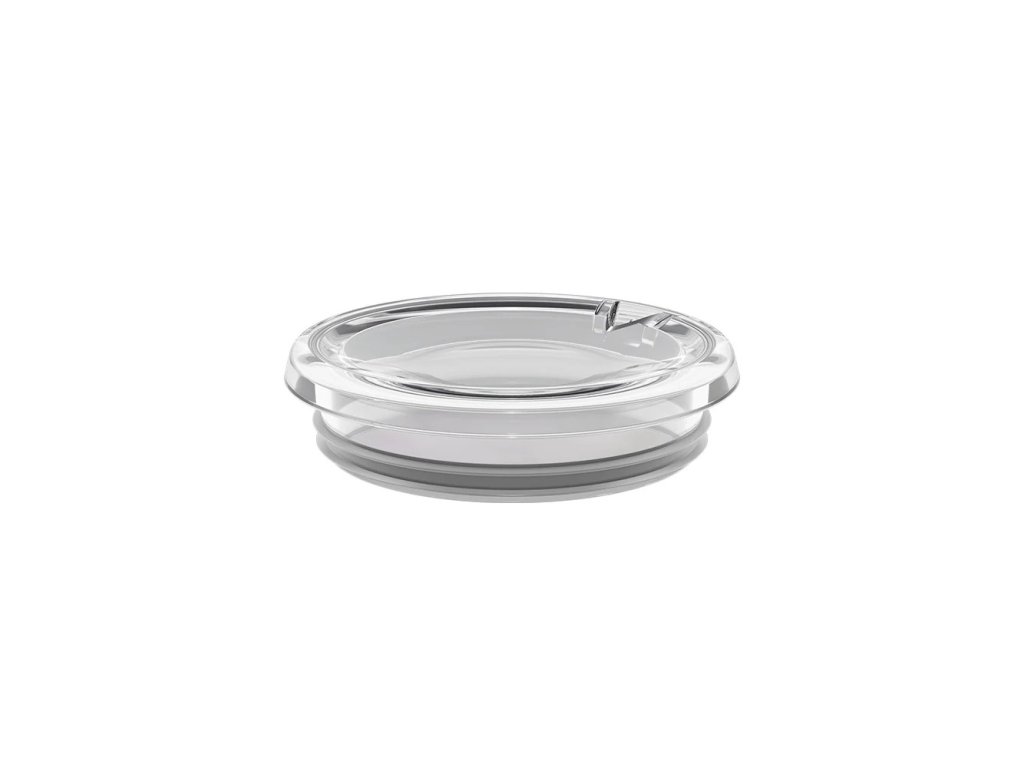 Jeho štýlový vrchnák je z priehľadného tritanu (plastu) s otvorom na pitie a so silikónovým tesnením.